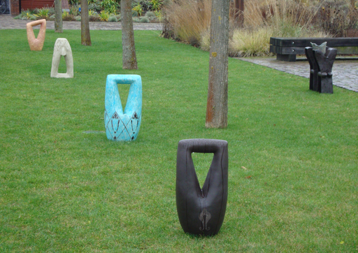 Mes premiers mégalithes étaient en forme de triangle reposant sur l’un des sommets. Pour certaines personnes, ils évoquaient des jambes en l’air. En retournant « Échappée », une tête m’apparut. Ceci a conduit à des objets où le triangle repose sur l’un des côtés (« Sibyllin », « Voyage intérieur » et « Introspection »).