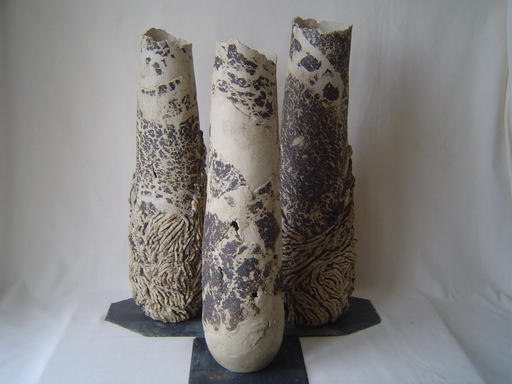 Ces traces, ces bribes, se rapportent donc au passé, à la jeunesse, à un regard finalement commun à chacun. J’ai commencé ce thème dans les années quatre-vingt-dix, en même temps que les mégalithes, et peut-être justement en contrepoids. Contrairement à ces derniers, les parois de ces objets sont fines. Leurs bords inégalement découpés, des trous, des lézardes et autres failles renforcent une impression de fragilité.