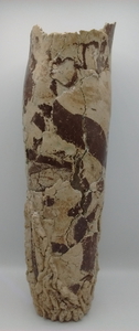 Soms zie ik mezelf als deze vaasvormen: lapjes die aan elkaar geplakt zijn. Deze flarden en sporen slaan eigenlijk ook op de vervlogen tijd, een universeel gevoel van nostalgie. Onregelmatige randen, scheuren en gaten dragen bij tot een gevoel van kwetsbaarheid, dit in tegenstelling tot mijn megalieten.